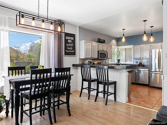 Located on a quiet cul-de-sac, this charismatic Stroh Ranch home is the perfect place to sit back and relax, beginning with the covered front porch as you walk up to the home. This four-bedroom / three-bathroom home is filled with cool and catchy updates. The living room features a reclaimed cedar wood accent wall, a real wood-burning fireplace, fresh paint, updated flooring, and 5" base molding. The dining area features updated light fixtures, a breakfast bar, and wainscoting. The kitchen has been retrofitted with terracotta floor tile, custom butcher block countertops, and a Southern-inspired backsplash. Stainless steel appliances and the glass top stove come with Bluetooth capabilities. The main floor half-bath has been fully updated. Upstairs, the three secondary bedrooms all have new carpet and paint. The secondary bathroom is updated with new flooring, countertops, lights, and faucet. The primary bedroom has been updated with new carpet, and crown molding, and features a bay window. The primary bath has new flooring, wall paneling, shower fixtures and light fixtures, and a true walk-in closet! Outside, your backyard is the perfect place to entertain or simply hang out:: xeriscaping and wood burning fire pit; raised garden and planter/potting station; plus mature trees and flower garden. The basement is unfinished with almost 700 square feet to make your own. Last but not least: location! This home is part of the Stroh Ranch community with a clubhouse, indoor/outdoor pool, weight room, tennis courts, and sand volleyball. Additionally, you are in close proximity (walking distance) to the Cherry Creek trails, grocery store, parks and multi-purpose athletic fields.
