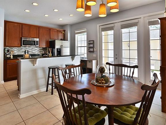 The perfect end-unit townhome is waiting for you in Berkshire Place! Ideal floor plan with common living areas on the ground floor and bedrooms upstairs. Step inside to your generous sized living room â volume ceilings help make the room feel open and bright. Your kitchen and dining space are in the back of the home. Gourmet style kitchen that boasts: granite counters, 42âcabinets, island with double sink and storage space, beautiful glass tile backsplash, closet pantry and breakfast bar. Large eating area â big enough to seat a crowd or to add cabinetry. Appliances included! Kitchen space is cheery and bright thanks to all the windows and French doors. Ground floor has a convenient half bath and separate laundry room. Master suite is upstairs in the back of the home. Sizable bedroom â room for a sitting area. Ensuite bath that you will absolutely love â STUNNINGLY UPDATED with large, dual sink vanity with Corian counters and step-in widened shower (frameless door) with attractive tile work. Rear of home fronts conservation area so you have a nice view from the bedroom window! Out back you have a private paver patio â ideal for relaxing or entertaining â and two car garage. Berkshire Place is part of the Lake Sawyer South, an attractive community with neighborhood pool and playground for your enjoyment. Also included in your community dues is ground maintenance! Youâre a short drive to essential shopping, the attractions and major roadways. This home shows well â come see all that it has to offer!