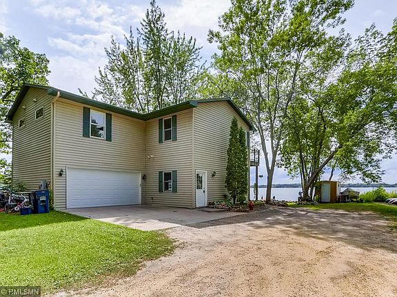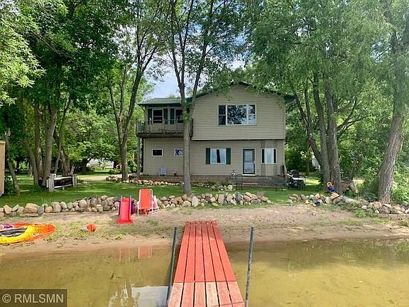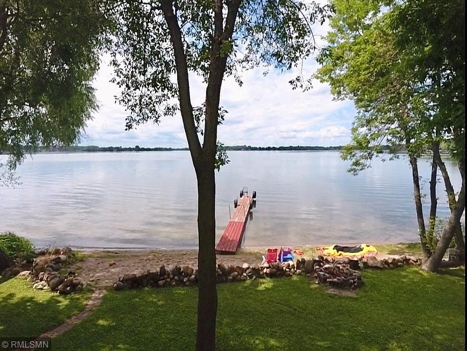 Rare waterfront opportunity to be on the desirable Chisago lakes chain under 400K! Just steps from the sugar sand beach sits this 2 story home with all living facilities on one level, in floor heat, heated 2 car garage, an amazing open concept upper level great room with vaulted knotty pine tongue and groove ceilings which allow tons of natural light and stunning waterfront views. Prime WESTERN exposure offering some of the best sunset views around. South Lindstrom lake has great fishing, great recreation, and now navigable by boat to 4 other adjoining lakes! Perfect place to live "The lake life".