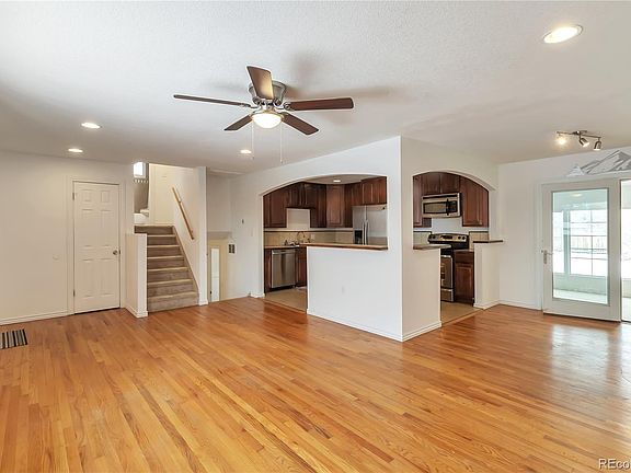 This stunning tri-level home with a finished basement backs to an open space and sits directly across from a Park/Pool. The main floor features wood floors, new carpets, paint and 6 panel doors. The additional sun rooms open into an open floor plan style main floor with tons of light and access to backyard and attached 2 car tandem garage. The Laundry room has heated tile floor, solid surface counter tops, utility sink & CF! There is a sprinkler system, newer landscaping and a full length patio. The water heater is only a few years old. LOCATION LOCATION LOCATION. This is extremely close to Anschutz Medical Campus, Children's and the newly redeveloped Fitzsimons hospitals.