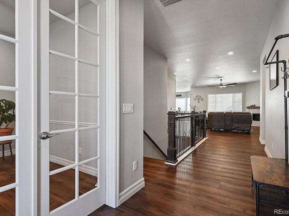 Amazing Opportunity. Discover your dream home in the coveted enclave of Reata Ridge Village. This nearly new, barely lived-in 4-bedroom (including one non-conforming bedroom) + study, 4-bathroom ranch plan is a testament to modern elegance and functionality. The open concept floor plan is perfect for entertaining, boasting high ceilings, wide plank LVT flooring, and a stunning modern gas fireplace. The upgraded professional kitchen features a double oven, center island, upgraded modern wood cabinets with rollout shelves, a pantry, and high-end Café Monogram stainless steel appliances. The posh main floor primary suite offers a luxurious 5-piece bath with a separate shower and tub, double vanity, and a huge walk-in closet, with an optional door for easy access to the back patio. Additional highlights include a main floor study and laundry room, an upgraded powder room, and a beautifully finished high-ceiling basement with additional canned lighting in the primary bedroom, great room, and kitchen. Ethernet and data ports are installed throughout the house, and ceiling speakers are installed both upstairs and downstairs for a seamless audio experience. The home is adorned with Yorktowne Cherry cabinets throughout, and the upgraded trim adds a touch of sophistication. The neighborhood provides an array of social activities, walking trails, and two neighborhood parks, and is conveniently located near shopping, restaurants, and schools. With just a 15-minute drive to DTC, 30 minutes to DIA, and 30 minutes to downtown Denver, this home offers both luxury and convenience. Embrace the lifestyle you deserve in Reata Ridge Village.