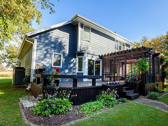 Welcome to 12939 Royal Orchard Dr in the picturesque town of Story City! This spectacular 2-story home sits gracefully on 1.5 acres and embodies the true essence of riverfront living. Just moments away from the charming community of Story City, this 5 bedroom, 2.5 bath home is a haven of tranquility. Inside, this home offers a comfortable and well-designed layout with nearly 3000 sq. feet of finished living space. The main floor features a sunken living room with gas fireplace, kitchen with vaulted ceiling, cozy informal eat-in dining area, formal dining room with beautiful hardwood floors and a flexible space/area at the front of the home that is perfect for a home office or formal living room. A ½ bath and main floor laundry area are conveniently located off the entrance from the garage. Venture upstairs to find 4 spacious bedrooms and 2 bathrooms. The primary suite includes a walk-in closet and an ensuite bathroom with dual sinks, and a jetted tub; the perfect place to retreat after a long day. The lower level of the house is fully finished and boasts a 5th bedroom, a family room, and additional finished area for your needs. With an attached 2-car garage and a detached 16' X 30' third stall garage/shed, the property offers ample space for vehicles and hobbies. Step outside, and you'll discover an outdoor oasis like no other. The beautifully landscaped grounds features a screened/covered deck, serene Koi pond complete with a quaint little bridge, and a gazebo area; creating a setting that's perfect for relaxation. Follow the path, and you'll come across a perch overlooking the river valley with access to the skunk river. The owner has thoughtfully built a staircase and a path, providing easy access all the way down to the riverbank. Here, you can immerse yourself in the river's beauty, whether for summer fun or winter activities. There's even a swing by the river where you can sip your morning coffee while watching the water flow peacefully by. Make 12939 Royal Orchard Road your oasis today! New Roof (Jan. 2024) and Radon System (Fall 2023)