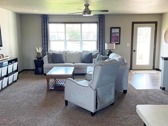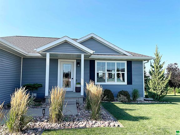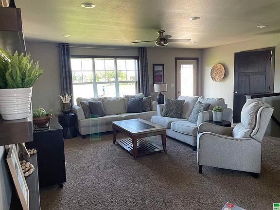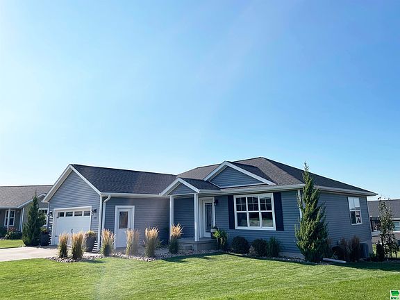 This beautiful home, built in 2014 by Vision Builders, sits at the end of a quiet cul-de-sac. The yard is well-established with landscaping and a sprinkler system. Enjoy outdoor living to the fullest with a spacious concrete patio (poured in 2021) featuring a in-ground fire pit, plenty of space for a dining table, grill, and smoker, and a large Trex deck (built in 2020). It is located within easy walking distance to community attractions including: All Seasons Center/SiouxNami Waterpark, Country View baseball/softball diamonds, three playgrounds, a dog park, and sand volleyball courts. Inside, the house is move-in ready with neutral colors, stained wood doors and trim upstairs. The open floor plan is great for entertaining with lots of natural light, especially in the garden-view basement. The garage is fully insulated and features a heater with a thermostat and a drain. The laundry room and kitchen have high-quality, custom VerHoef Woodworking cabinetry with ample storage. The laundry room includes an under-mount sink and a countertop for folding. The kitchen boasts ceiling-height cabinets with adjustable shelving, a spacious walk-in pantry, high-quality stainless steel LG appliances, an upgraded range with a warming drawer, and a large island with seating for three. The dining room is bright and airy, with a walk-out door to the deck and patio. The cozy living room has large windows and custom floating wood shelves. The main floor includes a bedroom, a full bathroom, and a master suite with space for a king-sized bed, a walk-in closet, and a full master bathroom with built-in towel storage. The basement offers two more bedrooms, one with a walk-in closet, a full bathroom with a large walk-in Onyx shower, a rec room, and a dry bar/coffee bar with a beverage fridge. This home is ready for you to move in and enjoy!