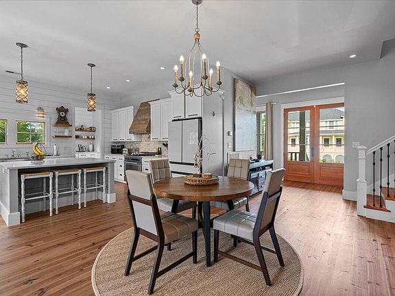 Spectacular Farmhouse meets Coastal design in this 2018 custom built home by Brackish Builders in the beautiful Beresford Creek Landing neighborhood. Upon entering, you will be greeted with heart of pine flooring and loads of natural light in the open living space that overlooks the serene backyard with pool. The custom features in this home abound: Shiplap in many living areas, Steven Shell Vanities and Lighting, high end Anderson wood/vinyl clad windows, Atkinson Pool with lush landscaping & outdoor shower, irrigation and landscape lighting and so much more. The gourmet kitchen is stunning with open shelving, Bertazzoni gas cooktop and electric convection oven, pot filler, and wonderful Butlers Pantry that makes an excellent coffee station. Owners retreat on main level as well as a