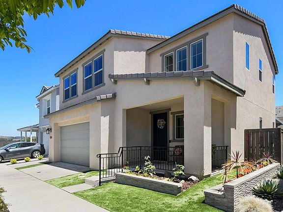 Welcome to this beautifully maintained home located in the desirable Village of Escaya! With 4 bedrooms, 3 bathrooms, and thoughtfully designed indoor - outdoor living spaces, this home is perfect for any family. A standout feature is the full bedroom and bathroom located on the main floor, perfect for guests or home office. Upstairs, you’ll find the remaining bedrooms, including the primary suite with an en-suite bathroom, dual vanities, and a walk-in closet. The upstairs laundry room adds extra convenience. Inside you’re greeted by a bright, open-concept floor plan that connects the living area to the kitchen—ideal for everyday living and entertaining. The kitchen boasts spacious countertops, SS appliances, plenty of cabinetry, and a spacious island. Step outside to enjoy sunny afternoons and warm summer nights in the beautifully designed backyard. The front and backyard are fully landscaped with low-maintenance turf. Fire up the grill, entertain guests, or simply relax under the Alumawood patio cover that offers shade and comfort. Additional highlights include: solar panels for energy efficiency, a mix of luxury vinyl plank and Berber carpet flooring, water softening system for the entire house, central A/C, and an attached two-car garage. Living in Escaya means access to amenities including parks, playgrounds, pools, spa, dog parks, a restaurant, and more. You're just minutes from Otay Ranch Mall, major retailers, and dining.