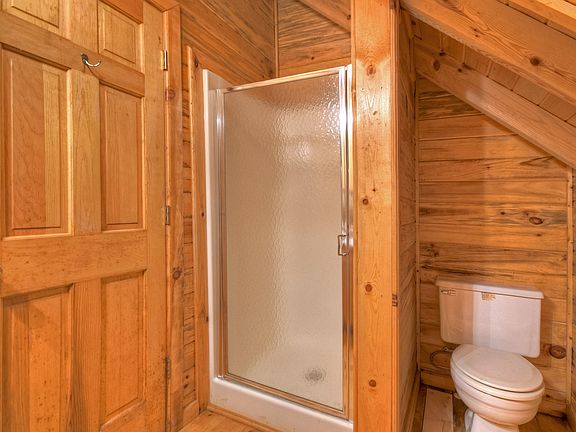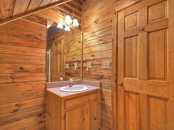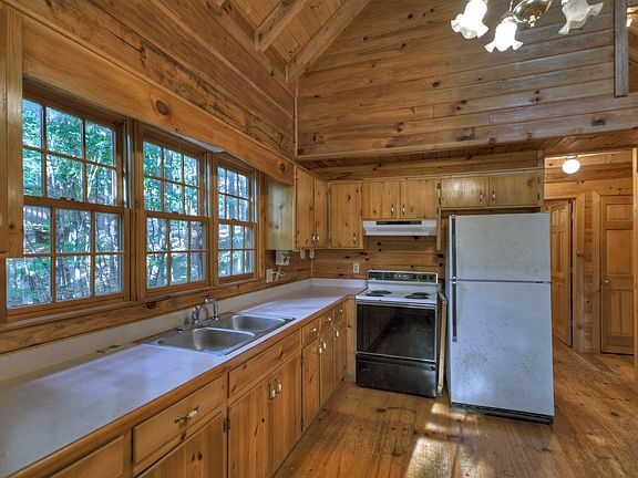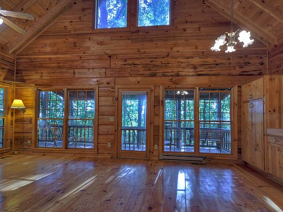 New lowered price for a true Dovetail Log Cabin on a very gentle lot with seasonal mtn views, 2 bedroom bath on main floor and LARGE loft bedroom with full bath. OPEN floor plan with a Vaulted ceiling , large eat in kitchen area, large windows, wood burning fireplace and A LONG level driveway, Benton McKay Hiking trails through out the development and ponds for fishing, minutes to 515 and Blue Ridge, but tucked in the woods ! cabin needs updating and floors refinished, large usable storage in crawl space/ roof approx 1 year old,/