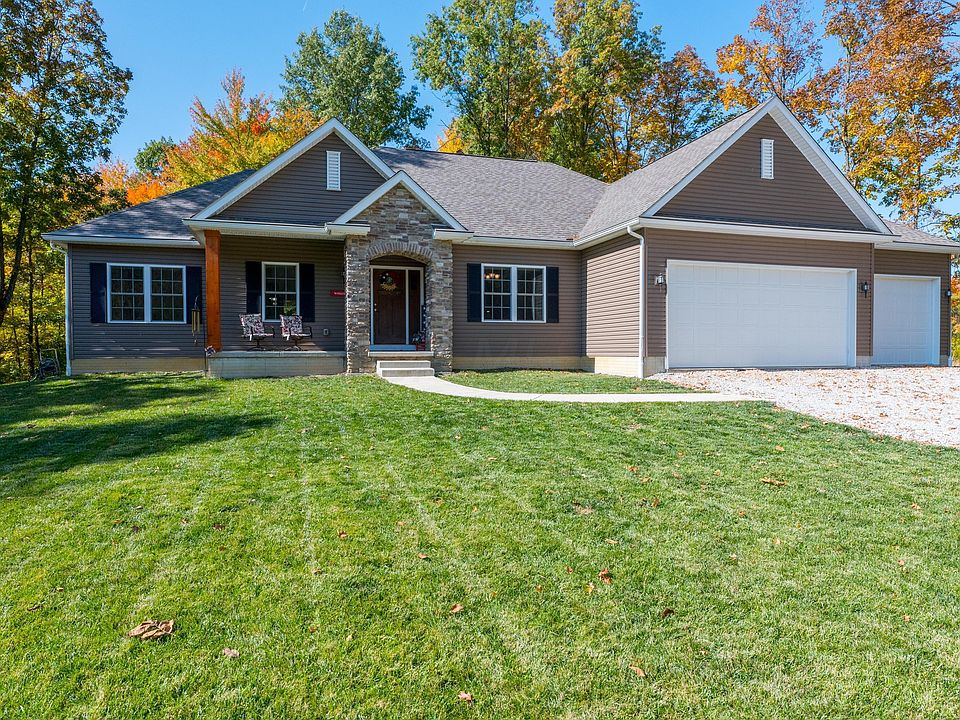 Looking for something close to amenities but with the PRIVACY and TRANQUILITY of country living?!?! This ONE is for you! Just 20 minutes to Polaris and 10 minutes to Sunbury this newly built Schumacher RANCH home sits on 5 WOODED acres. Majority of property is wooded with a stream and with over 2100 square feet, 3 beds, 2 full baths, FULL basement and 3 car garage this home has plenty of space to roam inside and out. Features include 9 foot ceilings with 12 foot vaulted ceilings in great room, open living with a large kitchen island, double oven, 1st floor laundry, added gutter guard system, Pex plumbing system, and much more! WHY build and wait when you can move right in! Come see everything this home has to offer! Please see A2A