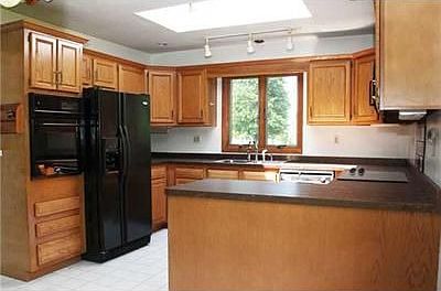 Bright and cheerful Split with updated kitchen.Lots of cabinet and counter space. Hardwood floors beneath some of the carpeting, woodburning fireplace in the living room. 3 bedrooms up with a full bath then an additional full bath with jetted tub on the first floor.first floor laundry updated mechanicals and a super lot. Over 220' deep and private.