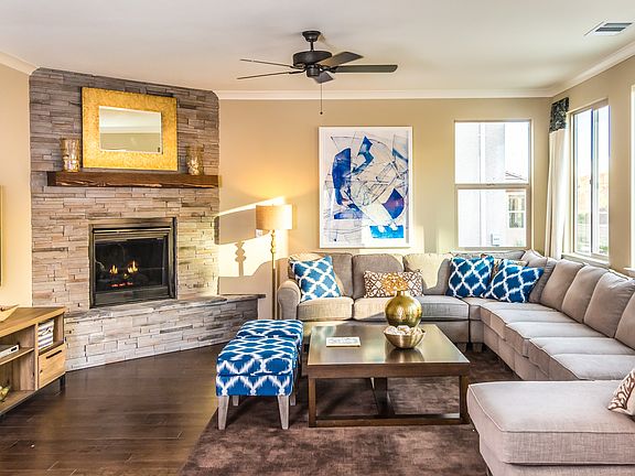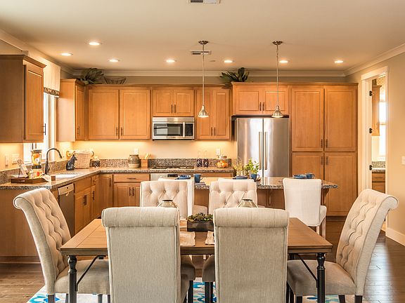 The Capitola is a two-story home featuring 2,698 square feet and many unique spaces including a huge great room, game room, master retreat, and a large storage area under the stairs.A first floor bedroom and full bathroom off the entry way with options for a den creates a perfect office area or private guest bedroom. The gourmet kitchen is a chef's delight, featuring 7 color options for granite slab or quartz kitchen countertops, 10 custom stain options of shaker style cabinets, stainless steel appliances, stunning tile flooring, and large cabinet pantry ? all standard features at Santana Ranch by Anderson Homes. The custom wood stair rail adds elegance as you walk up to the game room with an option for a fifth bedroom. The large master bedroom suite features a retreat, lots of windows for natural light, a huge walk-in closets with built-in closet organizers and bathroom with a large vanity, separate shower and luxurious Kohler soaking tub. Master and guest bathrooms include one of four standard piedrafina selections for vanities and master bathroom tub and shower surrounds. The spacious guest bedrooms offer remarkable views of the countryside or the community below. The spacious 2-car garage comes textured and painted. Energy efficient features include drought tolerant landscaping, tankless water heater, and more. Solar available for lease or purchase, contact our sales team for more information.