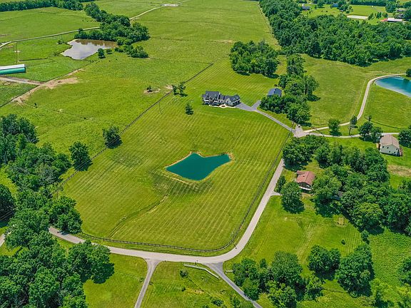 Luxury lifestyle pairs with picturesque countryside views at this exquisite, executive estate in central KY! Constructed in 2022 privately nestled on 12+/- fenced acres, this elegant, modern home on a walk-out basement boasts 4 en-suite bedrooms & 4.5 baths w/ 6100sf+ of captivating detail and design! An open concept great room boasts a 22ft cathedral ceiling w/ stone fireplace. The open gourmet kitchen/dining area includes custom cabinetry w/ quartz countertops, marble backsplash, butler's kitchen/prep area, walk-in pantry, island & stainless appliances. A dazzling vaulted ceiling and walk-in closet are highlighted in the immense primary suite, featuring a marble tile wet room. The family room, home office, craft room, home theater, gaming room, and exercise room are ideal for enjoyment, while the private covered upper deck/back patio and heated in-ground pool are perfect for entertaining! Exceptional features include 1095sf of temp controlled storage, 3-car attached garage, 9-ton geothermal, and a 2400sf heated multi-use building (can be used for livestock/horses). Under 15 min to downtown Danville & a short drive to Lexington/Louisville, don't miss this breathtaking property!