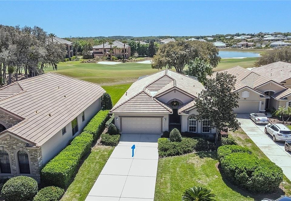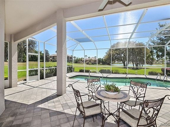 LOOK! New Photos of This Unique Gorgeous VIEW and HOME! Seller is providing a HUGE SAVINGS for YOU!!! Home is Ready To Move In! This BEAUTIFUL spacious St Christopher style CAREFREE Pool Home with an absolutely STUNNING Golf course and FOUNTAIN VIEWS as the Palm Trees sway in the breeze is here for you! Imagine sitting in your large Lanai while living in the amenity rich gated community of Terra Vista. Enter the long driveway ready for entertaining, and into the beautiful Open Floorplan! Home has 3 bedrooms to enjoy, with a dining area that you can use as a Dining Room, Sitting Room or open Office, your choice. High ceilings with trays, soothing colors and natural lighting emphasizes the airy feel. Home is 109 ft above sea level on a quiet cul-de-sac. Privacy out of the Kitchen window showing the 1st hole of Skyview Golf Course, Privacy in the back yard view of the Pool, Trees, Fountain in the Lake, and beautiful Southern exposure, these all bring a sense of peace when living in this very special home. Sellers have used as a second home, so it has been loved, but used only for a few months a year. Wonderful neighbors and close proximity to Skyview Golf Course Prop Shop and Restaurant are less than 1200 feet away via the exclusive Golf Cart Path at the top of the hill! This home is waiting for its next Owner to enjoy while playing Pickleball, Golf, Tennis, dancing at the Tiki Bar, enjoying the Dog Park, swimming in the pools, and working out at the Fitness Center! Let's not forget the Spa and going for walks with the 8 miles of walking trails. Like to bike, do that in the community and its less than 5 miles to the 42 miles of Bike Trails. Come make it your own!