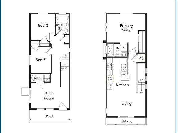 The main floor features 2 spacious bedrooms, a full bathroom, and a versatile flex area that can be customized to suit your needs—whether as a home office, playroom, or additional living space. The second floor is dedicated to the living room and the master bedroom, providing both privacy and an open, airy layout.