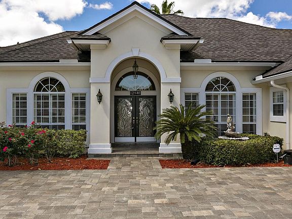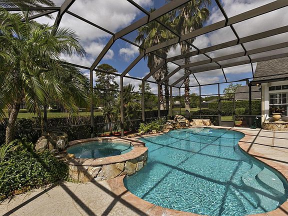 Lakefront pool home in desirable Jacksonville Golf & CC is priced to sell! This 4BR, 3BA split floor plan with heated screened pool and spa sits on over half an acre with southwest lakeviews. Expanded paver driveway, new carpet, architectural shingle roof in 2007, gutters, newer pool pump, filter and HVAC. Family room with fireplace, wood floors, crown molding, and built-ins. Eat-in kitchen with island, granite counters, large breakfast bar, wood floors and stainless appliances. Formal living and dining, French doors, plantation shutters, water softener, inside laundry room with sink, oversized garage with storage, and golf cart conveys. Flagstone gas grill, termite bond, mature landscaping with established tree canopy, security and sprinkler systems.