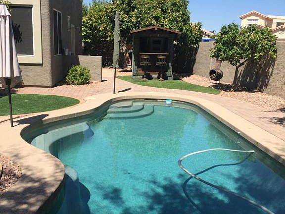 This home has great curb appeal, sits on a generous corner lot and was freshly painted this year. Walk into a lovely courtyard with synthetic grass and a PebbleTec Pool built in 2012. The inside of the house has been upgraded with wood floors in the living and dining rooms and travertine in the kitchen and family room. Kitchen was updated in 2015 with granite countertops and stainless steel appliances. The A/C-heat pump system was replaced in 2013 and tile roof underlayment was completely replaced in 2014. The property is enhanced with mature fruit trees and low HOA fees. There is a community area with a Ramada, grass and walking paths within a few yards of this beautiful home.