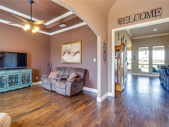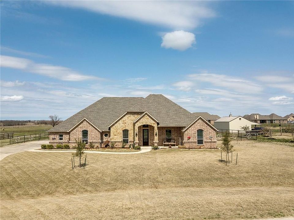 Quiet and Peaceful country living just moments from the city limits. This gorgeous home is located on a 1.1 acre lot & has so much to offer. This single story home offers 4 split bedrooms, 2.5 baths, formal living that makes the perfect study, formal dining, large family room with stone fireplace, wonderful kitchen with Island, SS appliances, under cabinet lighting, cozy breakfast, private master suite with large jetted tub, separate vanities & large walk-in closet, beautiful hardwoods, tile in all wet areas, granite throughout, crown molding & solid wood cabinets. Kick back & relax in your private outdoor living area with WB fireplace. Custom 30x40 insulated workshop with electric makes the perfect man cave!