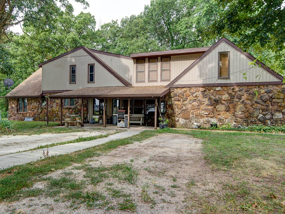 This one of a kind 2 story stone home has 3 bedrooms, 3 bathrooms, and so much more! Enjoy time on the patio with the built in grill/fire pit or sit on the back deck and take in the amazing views. Inside you can spend time around the large stone fireplace in the 2 story living room or in the sun room/office off of the master! The basement has a living area and a non-conforming bedroom along with a full bath. There is also lots of storage. For your hobbies, the large stone barn/shop has several large rooms, doors on both ends, and even a bathroom with washer and dryer! At one time it was used as a dog grooming business so there is a large kennel area beside the barn and large rooms. Several sheds around the property and a floored walk up attic the whole length of the barn offer lots of storage. There are several water spigots throughout the property for watering your plants or livestock. The home is all electric but has the hookup for propane if you would prefer that. So many options!