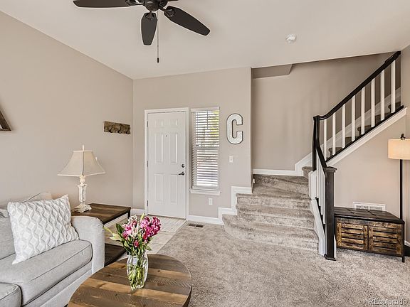 Welcome to Thorncreek Village. This fantastic 2-story townhome has everything you need. It features an open floor plan that connects the living room to the dining space, kitchen, laundry, and main floor bathroom. Upstairs you will find two bedrooms and two full baths plus a loft space which is perfect for a home office or an upstairs living area. The mountains and walking path are right outside in your own private backyard with a patio covered by a retractable awning. The oversized 1-car garage and large crawl space are great for all of your storage needs. The well-maintained HOA takes care of ground maintenance, structure maintenance, and snow removal for a stress-free care of the exterior. Enjoy the benefits of a pool in the neighborhood for those hot summer days. Updates to the property within the last 5 yrs include: radon mitigation system with sump pump, roof, dishwasher/refrigerator, painted interior trim, several windows, tankless water heater and air conditioner. Awesome location near Thorncreek Golf Course, Orchard Town Center, and Denver Premium Outlets, and the nearby light rail makes commuting a breeze.