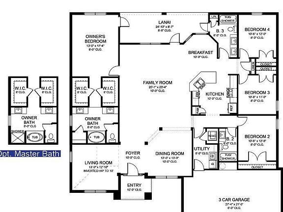 2508 sqft 4/3/3 included features: 3 car garage, Tray ceiling w/crown in master bedroom, Separate tile shower w/light in master bath, Beveled edge on HD counter tops, Stainless steel upgrade, Rear door mini blinds, Interior double doors w/o glass, Tile hallway from bedroom 2 to family room, Stone on center column between 2nd & 3rd car garage, Pre plumb for utility sink