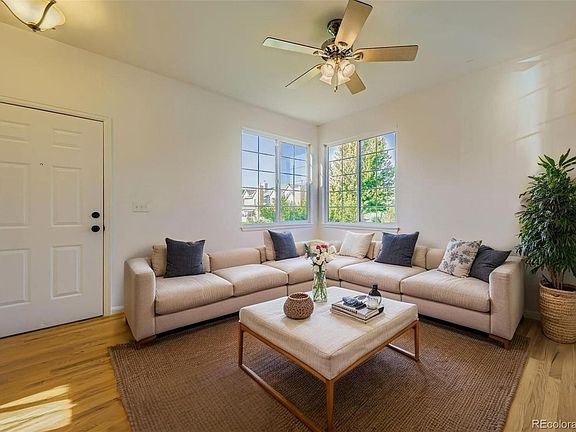 Experience modern comfort and effortless living in this recently updated corner-unit condo at Legends at Hunters Glen. Tucked along the greenspace in one of Thornton’s most desirable communities, this open-concept, single-level home features 9-foot ceilings, abundant natural light, brand-new hardwood floors, and a freshly painted interior (both done Aug 2025) with a transferable warranty. Enjoy peace of mind with thoughtful upgrades, including new windows and a sliding door, a new furnace with a smart thermostat, new roof (assessment paid), and updated exterior lighting. A wide, gently sloping ramp to the entrance ensures easy accessibility and added convenience. The living and dining areas flow seamlessly into the eat-in kitchen, featuring stainless steel appliances, a pantry, ample cabinets, and access to a private deck overlooking the greenspace—perfect for relaxing or entertaining. The spacious primary suite includes a walk-in closet and a fully renovated bath with double sinks, linen storage, and an ultra-premium walk-in shower. For privacy, the second bedroom is separated from the primary suite by the second bath and laundry room. Storage is plentiful, with a deep closet beneath the stairs, an exterior deck closet, and a detached garage with metro racking included. The community offers a well-maintained pool, manicured green spaces, and a welcoming, dog-friendly atmosphere. Just two blocks from Hunters Glen Lake and its scenic walking loop, outdoor recreation is at your doorstep. Everyday conveniences are minutes away, including Denver Premium Outlets, Costco, Top Golf, Lifetime Fitness, Postino Wine Bar, Chicken N Pickle, and more. Commuting is simple with the Eastlake Light Rail Station less than a mile away and quick access to I-25, E-470, and the Northwest Parkway. With low HOA fees, extensive updates, and a prime location near shopping, dining, recreation, and transit, this home perfectly blends comfort, style, and convenience.