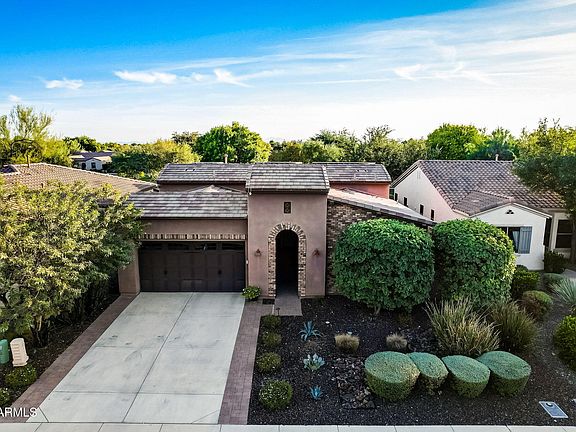 Rarely available home in the original MODEL PARK! This solar powered ''Positano'' with view fencing out to a beautiful greenbelt is a pitching wedge away from the Kiva Club! Large, neutral tile throughout (no carpet)! Light granite slab counters, dark recessed maple cabinets, and stainless appliances including an induction range. Reverse osmosis, pendant lighting, and a large kitchen island complete this Gourmet Kitchen! Great Room surround sound plus center courtyard with pavers! Large Primary Suite with separate tub & shower plus vanity. Split plan with Guest En Suite, plus private Den and Powder Room. Backyard features extended paver patio and gas firepit! Exterior of home was recently painted. WHAT A DEAL! The last 4 former model sales have all sold quickly and over $400/sq ft! Exterior recently painted. APS bills average less than $27/mo and Seller even charges their Tesla!