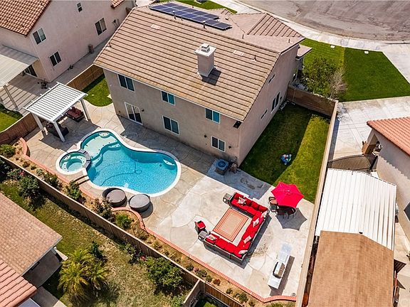 Beautifully remodeled POOL home close to schools, parks and shopping. This home has all new flooring, crown molding throughout, recessed lighting, a gorgeous stone accent wall with spot lights, and upgraded light fixtures. There is a downstairs bedroom with a full bathroom adjacent to it. The bathroom has been upgraded with new fixtures, and a metal decorative wall. The kitchen appliances are all two years old and the counter tops are granite with the granite extending up the wall for a full back splash. The fireplace in the family room has a stone "facing" and large mantel. Upstairs you will find two generous size secondary bedrooms, an extra large master bedroom, a great loft with built in bookshelves and entertainment center, along with the laundry room. The master bedroom is beautiful with textured wall paper on one wall, and enough room for a sitting area. Both secondary bedrooms upstairs have custom paint and chair railing. Outside is a large swimming pool with spa and waterfalls and a removable child's gate that surrounds the pool. There is also a covered alumawood pergola, a huge sitting area with BBQ that is perfect for entertaining and a very good size side yard with grass. This home also has the Nest Thermostat, two Ring doorbells and a Keyless front door lock. You will save a ton of money on your electric bills with the solar panels. This home is walking distance to Harada Heritage Park and close to the elementary, junior high and high schools.