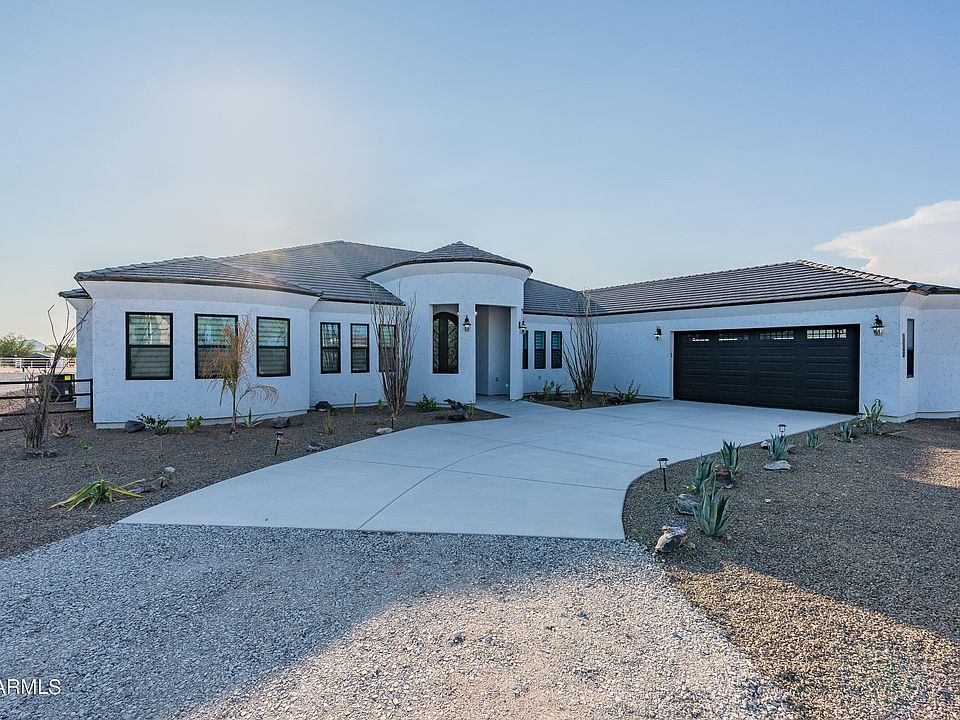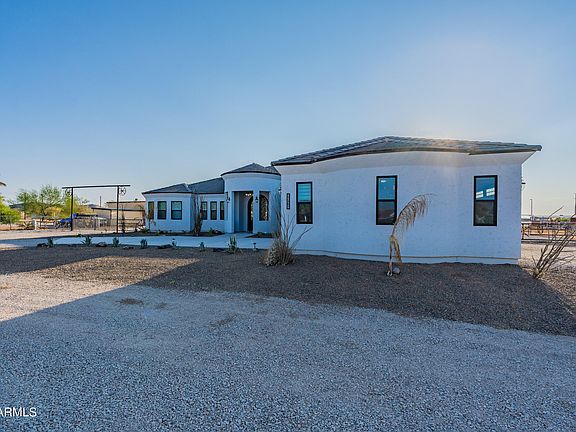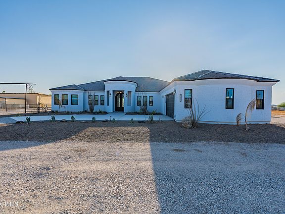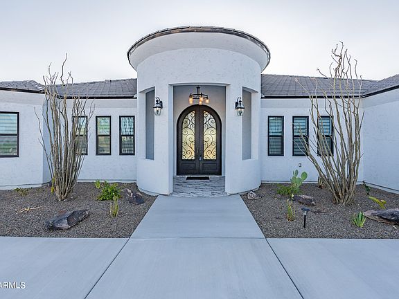 Starting with the outdoor amenities, having over an acre of land with horse privileges offers ample space for various outdoor activities and potentially keeping horses. The shared well is a practical feature ensuring reliable water supply. The 400 amp electrical panel is a substantial power capacity, perfect for accommodating future additions like a casita or workshop without worrying about electricity limitations.Moving indoors, the layout is designed for both comfort and style. The 4 bedrooms, especially with 3 having their own bathrooms, offer privacy and convenience for occupants and guests alike. The total of 5 bathrooms, including one on the rear patio, adds to the convenience an accessibility of the property. The custom-made kitchen cabinets and gorgeous granite countertops elevate the aesthetic appeal of the kitchen while providing ample storage and workspace. The wet bar is a fantastic addition for entertaining guests and adds a touch of sophistication to the space. The open floor plan, coupled with 12' ceilings in the main area, creates an airy and spacious atmosphere, perfect for hosting gatherings or simply enjoying everyday living. The huge main closet with its own island adds a luxurious touch to the master suite, offering plenty of storage space and organization options.