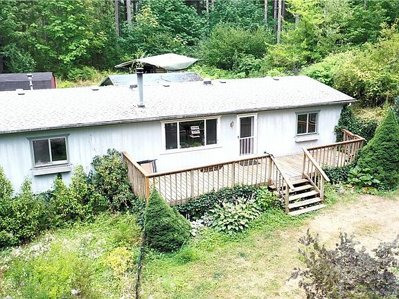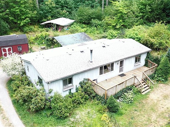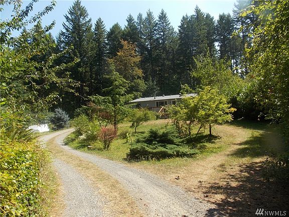 The setting for this property is just off-the-scale gorgeous! Extremely secluded w/auto gate, rimmed by tall, tall timbers. It's like entering the secret garden. Lots of fruit trees, raised beds, green house, etc. Amazing! The 3Bd/2Ba manufactured home is relatively humble but very live-able, functional & finance-able. Good layout w/master Bd & bath one end & other 2 on the other. Self sufficient. Several outbuildings: shop/storage, 2 garden sheds, metal carport, front & covered back deck, etc