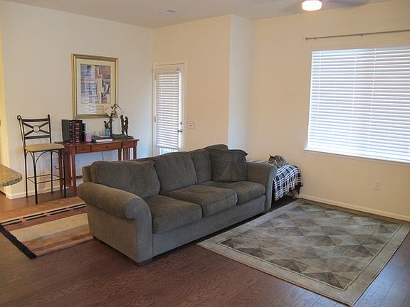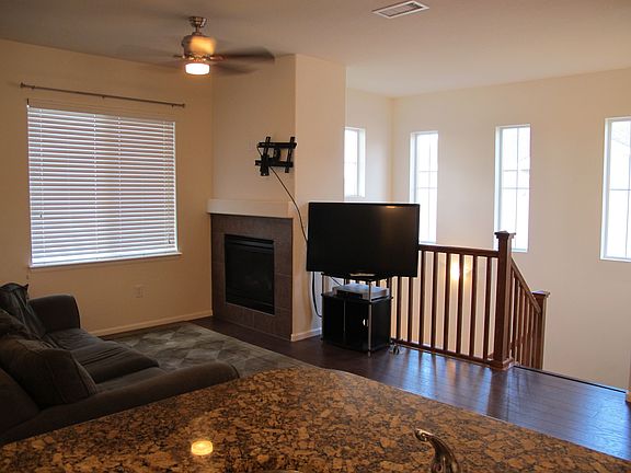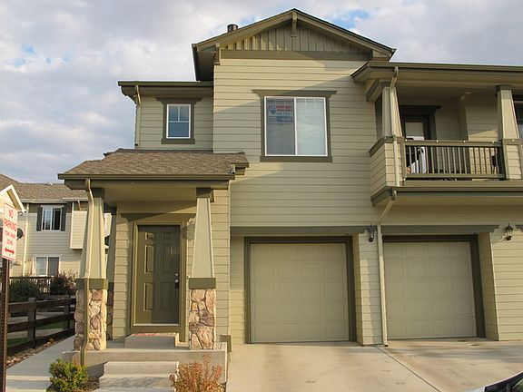 This beautiful private end unit town home is conveniently located right off Thorncreek Golf Course in new pool community! Built in 2011, the 1,200 square foot open concept floor plan and 9' ceilings, gives you plenty of room to move around! Two bedrooms, two full bathrooms and one car fully finished attached garage. Enter into lower level with wide planked, engineered cherry wood flooring which also adorns the entire living area, kitchen, dining room and hallway. Once on upper level you are welcomed into the open family room with gas fireplace. Gorgeous upgraded kitchen has slab granite counter tops, stainless steel appliances, large island with breakfast bar, pendant and recessed lighting, plenty of cherry pull out cabinets plus pantry. Open dining area is great for entertaining. Full sized laundry room has utility closet that houses the tank less water heater and high efficiency furnace. Secondary bedroom with mountain views is right across the hall from full bath. Private nice sized master has full bath with double sinks, cherry cabinets and walk-in closet. Enjoy the sunset and mountain views from the private balcony off family room. With all the upgrades the builder had to offer, this gorgeous town home is ready to move in!