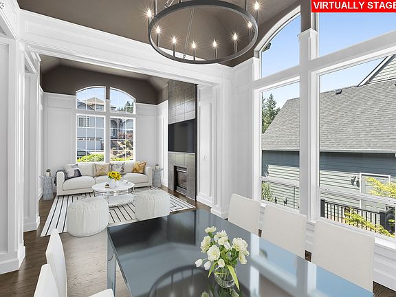 Come see this stunning updated one-owner Bull Mountain Home backing to a wooded greenspace with seasonal creek. This 5 bedroom, 3 1/2 bath home has been updated throughout and includes a newly permitted lower level expansion that brings the total square footage to over 4000.The wow factor begins with a dramatic 18-foot entry with finished wainscoting and gleaming hardwood floors that connect both the open formal and informal living areas. A grand staircase leads to a phenomenal primary suite that includes a walk-in shower, soaking tub, double vanities, and a walk-in closet with custom cabinetry. The upstairs also includes 3 more bedrooms and a full bath. The lower level 5th bedroom could be a second primary suite with its own walk-in closet, private laundry and attached full bath. This home is a true entertainer's delight, from the formal living and dining space with a gas fireplace and coved ceilings, to the open concept kitchen/great room with views and gas fireplace. The kitchen receives lots of natural light, and French doors lead to a beautiful deck with glass railings and retractable awnings. The lower-level rec room also has a gas fireplace, full bar area, and covered deck. The backyard is a park-like setting with a lawn, stamped concrete walkways, and fenced patio space that can double as entertaining space or a place to shoot hoops. The owners have also updated the exterior with a new roof, new driveway, heat pump, and paint. The washer and dryer stack will stay with transaction, however both refrigerators and T.V.'s seen are negotiable in the sale. Easy access to the 10-acre bull Mountain Park, Pacific Hwy 99 and Shopping! No HOA! Co-Owner and listing agent are related, co- owner is principal broker in the state of OR.