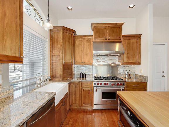 Meticulously maintained, full of custom luxury upgrades & drenched in sunlight! Welcome to a beautiful 4 bed/ 3 baths, 3100+ sq ft brick ranch home in tranquil Riverdale Park. Boasting a stunning upgraded kitchen with high-end 6 burner Wolf stove/oven, custom butcher's block center prep island & cabinetry with chef's desk, granite slab countertops, all stainless steel appliances and ceramic farmer's sink. Multiple large windows aided by 10 ft ceilings drench the ample open floor-plan with natural light. Finished basement offers private guest bedroom, stylish bath, bright rec area and bonus storage room. Nestled covered patio & pro-landscaped yard provide easy exterior enjoyment year-round. Master suite retreat w/ walk-in closet. Hardwood flooring throughout main level & granite counter-tops on all baths. Great location...down the street to school & park. Or leisurely walk to Trail Winds Park & Open Space. Close to markets & retail. Quick access to Quebec & E-470. A must see property!!