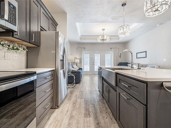 - Ceiling Fan(s), Crown Molding, High Ceilings, Living Room/Dining Room Combo, Primary Bedroom Main Floor, Solid Surface Counters, Solid Wood Cabinets, Stone Counters, Walk-In Closet(s)