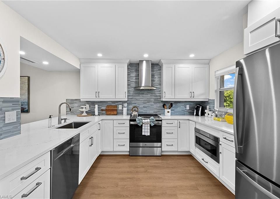 Completely updated and masterfully renovated condo located in the hidden gem of Anchorage, a waterfront condominium complex in North Naples. Being offered fully furnished, this second floor unit is the ideal vacation residence, full time condo, or investment property. The inviting kitchen features modern quartz countertops, gorgeous backsplash, stainless steel appliances and plenty of natural light. With updated bathrooms, flooring, and cabinetry, newer HVAC and hot water heater, the current owner has truly made this unit move in ready. The coastal decor and your own private balcony overlooking the pool and tiki bar make this a special condo to call home. The building consists of only 34 units, has low fees, a favorable rental policy, is pet friendly, and has an elevator for convenience. Do not miss your opportunity to own a slice of paradise, just minutes to the Gulf of Mexico and just a short bike ride to Delanor Wiggins State Park. The Waterside Shops, Mercato, and downtown Naples are also a short drive away.