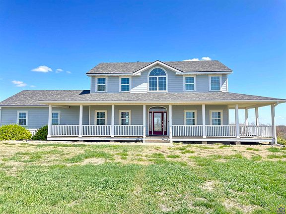 This 3BR, 2.5BA beauty sits on 40 ac +/- with pond, horse facility & 24X72X12 hay barn. White vinyl fencing, wrap around porch & amazing views in all directions will greet you. Whether sunrises or sets r your fave, you'll have both. Soaring ceiling in foyer, real hrdwd & tile floors, new carpet & new interior paint provide lovely details. Relaxed & formal dining areas, generous room sizes along with main & upstairs laundry ensure comfort and function. A true two story & amazing opportunity in unfinished, w/o basement allow you to put your finishing touches on it. Basement bath is stubbed with shower/tub surround on site & some framing & sheetrock in place. 4 stall barn, 4 paddocks, fenced & X fenced pastures, rubber mat floors, tack & hay storage just awaiting your animals. H20 & electricity in place. Reseeded prairie hay & brome pastures. Stocked pond. Must see for yourself to take in all details!