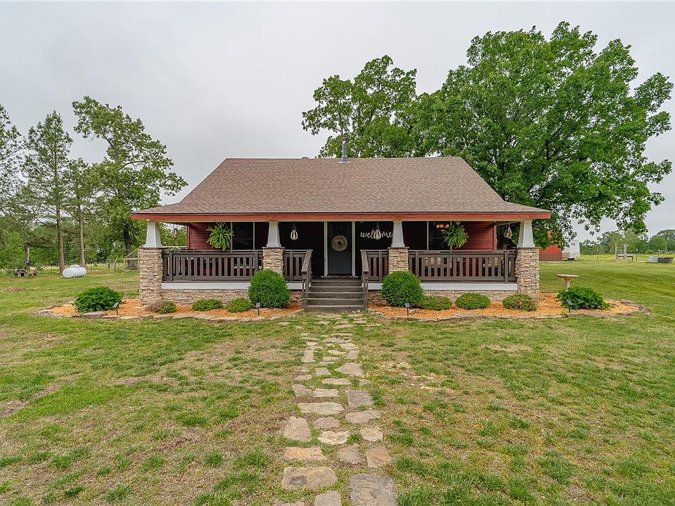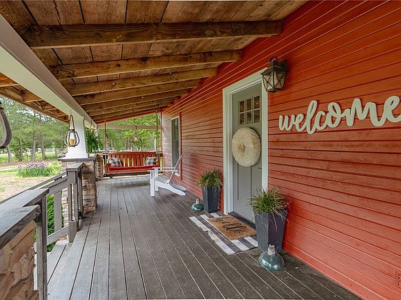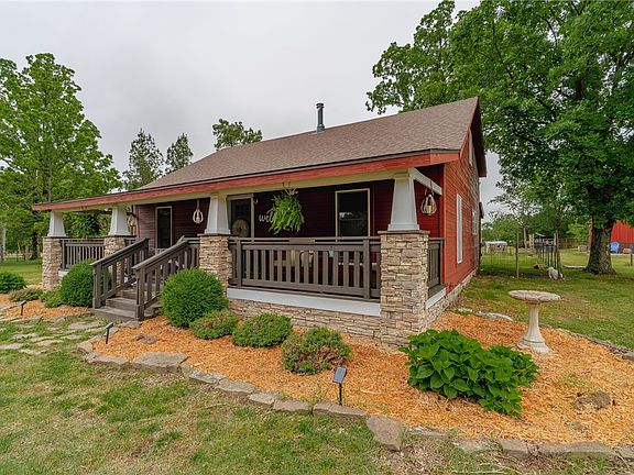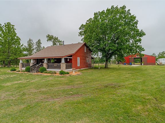 Perfect get away from town but close to everything this cabin has High vaulted ceilings in living & dining room with gorgeous exposed wooden beams that pair perfectly with the native stone accent wall behind the cozy wood stove. Boasting updated cabinets and granite countertops in the kitchen, open wood floating staircase to the two loft bedrooms on the second level this cabin has two covered porches, one for sunrises and one for sunsets, however the firepit might have you out under the trees! The four level acres have a 4 stall horse barn with tack room & wash stall, and a shop with wiring and exhaust fans. The quaint chicken pen is away from the home along with the raised garden beds. This cute place won’t be here long!!