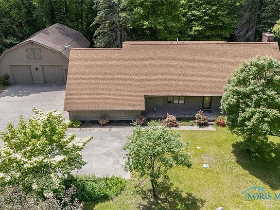 Cross your private bridge (20') and enter a peaceful, wooded retreat! This 3-bed, 2.5 bath open concept home features a remodeled kitchen with quartz island, cathedral ceilings, and stunning stone fireplace (chimney/liner 20'). Enjoy the finished basement w/service staircase to garage. Be inspired in your studio with large windows & water wheel down by the pond, tee off on your private 9+ hole whiffle ball/golf course, relax on your fenced in covered patio, or tinker in the 32x40 barn w/ loft. A nature lover’s dream—truly one of a kind! Additional updates: Roof 17', Furnace & H2O tank 21'.