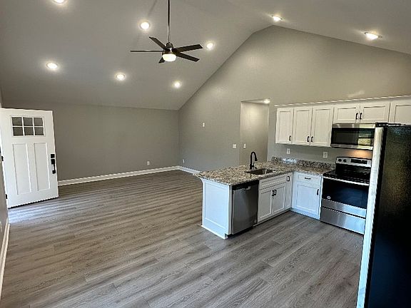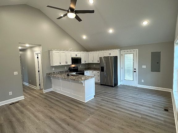 This is a new construction 3 bedroom 2 bathroom single family home on a beautiful corner lot in a great location convenient to everything. 4 miles from Walmart and Home Depot. 3 miles from UT Southern and Pulaski’s Square. 12 minutes from I-65 exit 14. 1 hour from Huntsville and be in the heart of Nashville in less than 1.5 hours. This floor plan is 1092 sq ft and doesn’t waste one square inch of that. Beautiful open concept living and kitchen with vaulted ceilings, custom cabinets, granite countertops, and stainless appliances included. You’ll find durable waterproof LVP throughout that perfectly compliments the light French grey wall color and character of the granite. Walking distance from the newly renovated and expanded Winner’s Circle market and fuel stop with the best pizza around.