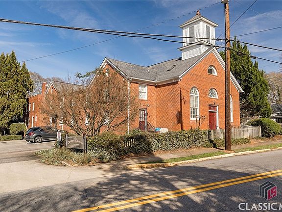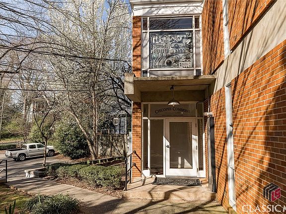 Rare opportunity to own a piece of In-town Athens history. This late 1800s church compound was converted into 10 condos within 3 brick structures, winning a Historic Preservation Award. Located within blocks of Downtown and UGA, as well as multiple parks, the Oconee River, the ever-expanding Greenway and Firefly Trails, this is Athens' most green-centric in-town neighborhood. The 2-story, 3/2 condo has a modern interior aesthetic, with exposed metal rafters and ductwork, 20' ceiling with skylight in common living area, a stylish kitchen with large island, stainless appliances, and pantry. There's a small, privacy fenced courtyard off this common area. There's a large bedroom and bath on main floor, with 2 generously sized bedrooms with an artfully designed 2 room bath upstairs. One of the upstairs bedrooms has french doors with views that overlook the common living area below; this room could be used as an upstairs loft living area, office, den, art studio, if a 3rd bedroom isn't needed; it allows for a great flex space. Ultimately, this community, Chicopee Commons, is a very unique mix of historic and modern elements, in a well landscaped setting, with parking areas available off both Arch and E Broad Street, and is about as close to Downtown or UGA's main campus as one can be, allowing one to easily access/enjoy all of what makes Athens a desirable destination.
