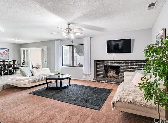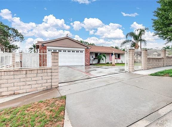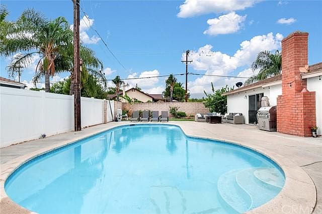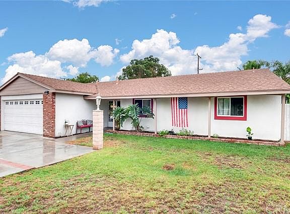 Great corner Single Story Pool home located in the heart of Corona. Gated front for privacy with double door entry into an open sunken living room. The Living room with a gas fireplace and new carpet opens to the dining area and kitchen. The kitchen features a good amount of storage and great counter space. There is also an enclosed patio perfect for another sitting area or kids toys. Down the hall is a large linen closet with multiple shelves for storage. Bedrooms one and two are on the right side and face the front of the home. The hall bathroom has an oversized tub with shower and sink with storage. The primary bedroom is large with two closets and has a sliding door to the backyard pool area. The primary bathroom has a separate vanity area from the shower/restroom for privacy. All bedrooms have new carpet. The backyard has a large pool with decking and a grass area. There are fruit trees on the far side of the home. The side yard has new pavers and the new vinyl fencing gives the backyard a great look. There is a two car garage and a separate garage space made for the laundry area. New exterior paint on house and front fence. Walking distance to Husted Park and schools. Low tax rate and no HOA make this home a perfect starter!