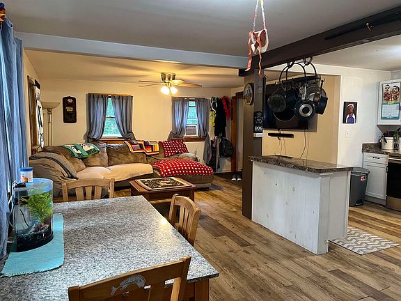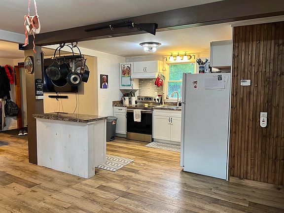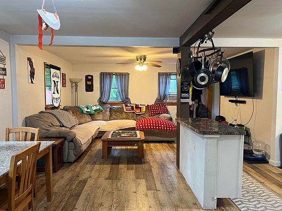 Get excited for this like new home! The sellers have been busy in the last 5 years replacing the roof, floors, heating system (2020), water heater (2020), new kitchen and new bathroom! Open concept makes this home feel much larger than you would expect and yet very cozy. 2 bedrooms on the main level and a full bath. The kitchen has nice white cabinets and a large island. The basement had endless storage, and a large finished room perfect for a den or home office. Outside you'll find a small porch and a large deck. There is a over-sized detached garage with a chicken co-op attached the back. The sellers have fenced in the largest part of the yard and created a dirt bike track on the other side, taking full advantage of all .88 acres of the property. If youre looking for low maintenance, and ease to Lake Dunmore this is the perfect home for you!