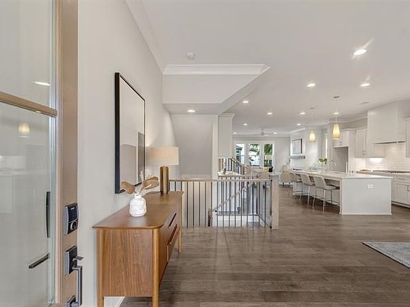 From the stately curb appeal accentuated by a covered front porch to the open and airy interior space-the Adderly 2-unit townhome plan is sure to welcome you home. Entering the foyer, you'll discover an expansive main level with beautiful hardwood floors throughout and vaulted 10' ceilings, adding to the open atmosphere, as well as a view of the well-appointed kitchen. Nestled in the heart of the floorplan, the kitchen's oversized prep-and-serve island offers plenty of seating for entertaining guests and leads to the adjacent great room with fireplace, making it easy to move around and mingle with guests or chat with loved ones. Upstairs on the top floor, the owner's suite with a spa bath-including a freestanding soaking tub, frameless tile walk-in shower, and large walk-in closet-is a peaceful retreat. An additional bedroom suite and convenient laundry room round out the top floor. Enter the fully finished terrace level from the owner's entry space off the two-car garage, where you can drop your daily grab-and-go items in the built-in storage, and enjoy the flex space with attached full bathroom, ideal for a private home office or guest suite. 2021-07-03