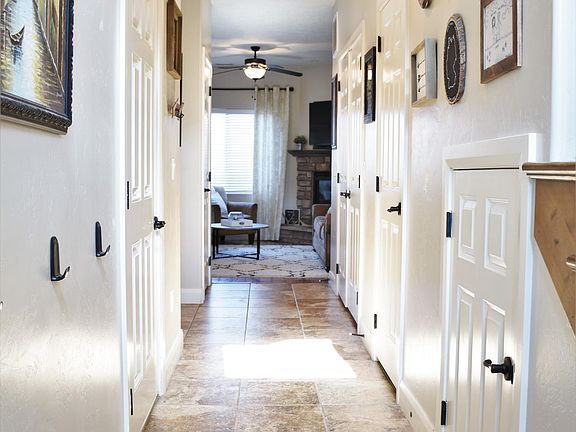 Beautiful town home in Cedar City! Featuring 3 bedrooms and 2.5 bathrooms in a two level home. Gorgeous stair case going upstairs as you walk in the front door. Large open kitchen with a bar and several closets for storage. Living room has outside access to back patio and a fireplace. Upstairs has 3 bedrooms. The master is spacious with a walk in closet, bath tub, shower and big vanity. Both bedr