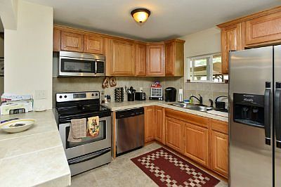 Nicely updated bi-level in well established quiet neighborhood. Great kitchen w/stainless steel appliances, ceramic tile floors, counters, & back splash. Breakfast nook w/breakfast bar & walk-out to huge covered wood deck & fenced back yard! Open and bright formal living room. Large master bedroom w/adjoining bathroom & lots of space for a sitting & dressing area. Cozy large family room in lower level. Other amenities include: $2,000 for carpet replacement, newer furnace & windows, ceiling fans, & close to military bases.