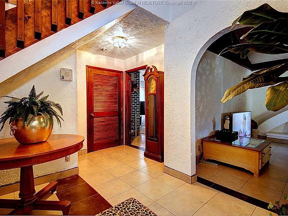 Private Home With Over 4 Acres On Poca River. Unique Design Offers Open Areas From The Entry, Living, Dining, Family Room With Fireplace, Office, And Sunroom, Also An Indoor Pool, Sauna, Steam Shower, Hot Tub, Property Lays Beautifully, Tile Floors On Main Level. Approximately 2000 Square Foot Indoor Pool And Gym Building. 4 Car Garage. Massive Space In Almost Finished Basement.