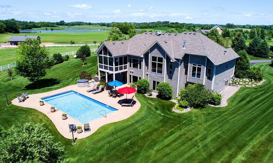 Bring your horses! Quality custom built 4 bedroom, 4 bath rambler by Lecy Brothers. Home features hardwood floors, knotty alder cabinets, granite, tile backsplash, lighted crown molding, 3 firepalces & screened porch. LL is great for entertaining; in-floor heat, wet-bar with slate floors & backsplash & walks out to inground sport pool. 10 acres, w/a 36x48 RAM building w/3 stalls, wash stall, barn heater & heated tack room. Heated & insulated gar. w/unfinished bonus rm, vinyl fencing, in-ground sprinkler & more. All on a dead-end street close to parks.