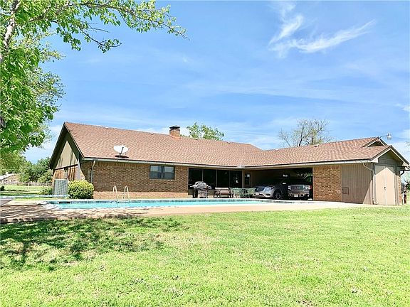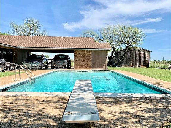 This property has it all! 6.98 acres with beautiful 2,570 sf brick home with 2 living areas, 2 dining areas, 4 bedrooms, 2 bathrooms, separate utility room and game room with pool table. In-ground pool with diving board and hot tub. Attached double carport with storage. Detached double garage. Circle driveway. All electric. 2 septic tanks. 2 water meters. Approximately 400 sf shop with cement floor and electricity. 5 stall barn with electricity and water. The property is fenced and cross fenced. Located out of the city limits but minutes from town!
