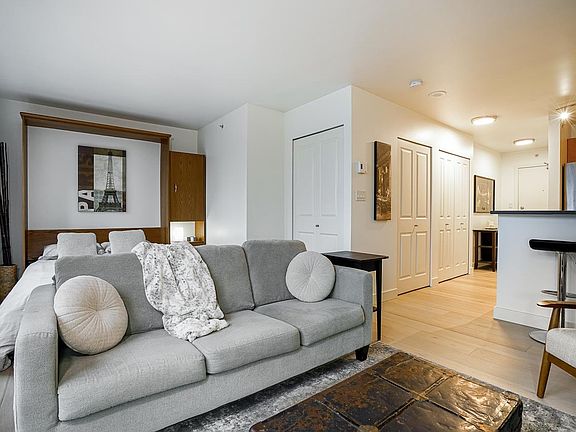 The OSCAR by Bosa. North facing Jr 1 Bed w/ juliette balcony. Great floorplan with no wasted space! Stunning white oak engineered hardwood flooring throughout. Open plan kitchen with stainless appliances, good counter space, breakfast bar & plenty of storage. Insuite W/D, queen size bedroom space with built in Murphy bed {included} and separate closet. Beautiful 2nd floor common roof garden w/ dog run. Building amenities include fitness room, party room w/ billiards, onsite caretaker + bike storage. Well managed and maintained building. 1 large storage locker included. Pets & rentals allowed (min 3 months). Excellent Yaletown location with seawall, restaurants, shopping, cafes, canada line & parks/beaches just steps away. Opens by APPOINTMENT ONLY please text to book!