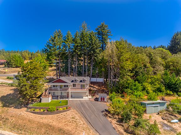 Beautiful home built in 2010 across from Umpqua River! Great for AirBnB or extended family. RIVER VIEWS from deck & almost every room! Proximity to coast & wineries. Downstairs- kitchenette w/ granite, 2 bedrooms, bath, family room. Upstairs- chefs kitchen with granite, Island w/ wine fridge, huge composite deck w/ half covered, master suite with laundry, and office/den! Nice dog area with artificial grass & tool shed. 2 laundry rooms.