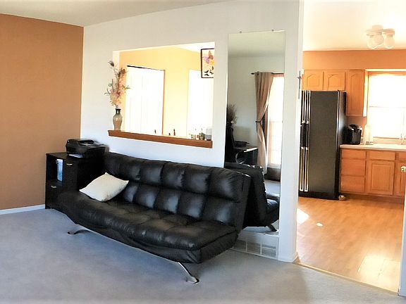 Tired of feeling penned in? This is a perfect home for you. Backs to huge open space w/access to bike paths & trails to parks. Perfect starter w/3 bedrooms, & 2 baths. Light gray carpet, Updated kitchen w/oak cabinets, & includes RF, ST & DW. Generous eating area. Up sports a lge master & guest bed w/new paint & updated full bath w/new tile, cabinet & more. Lower has FR w/wood burn fpl, new carpet & 3rd bed w/egress, 3/4 bath & laundry. Some newer dbl panes, 2 year new furnace w/ ability to add AC. Evap cooler currently in use. Roof=3 years. Hot water heater=10 yrs. Newer exterior & interior paint. Lge covered patio w/dry below type ceiling. Dbl deck w/mtn view from highest level--accessible from master or yard. Shows perfect. Huge yard w/separate fenced play area w/play house inc. Side yard for pets. Fully fenced yard. Enjoy the lilacs, roses, raspberries, grapes, lavender etc. 1 car attached garage. Corner lot, so only 1 neighbor! Don't miss this cutie!!