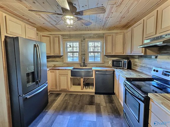 RIDDLES BEND-Quiet living on a large corner lot in the heart of Riddles Bend. This historic church building was renovated into a 3 bed, 1 bath cozy farmhouse and rests on over an acre of land! New LVP flooring, tongue and groove ceilings and butcher block countertops add so much character! Kitchen and bath were updated in 2023. Black stainless appliances and washer and dryer are all included! Don't miss the large deck, carport and two outdoor storage buildings! Book your showing today! *Note: Photos with furniture have been virtually staged.