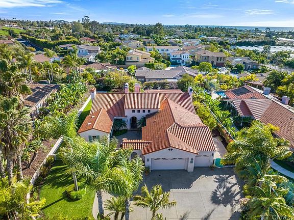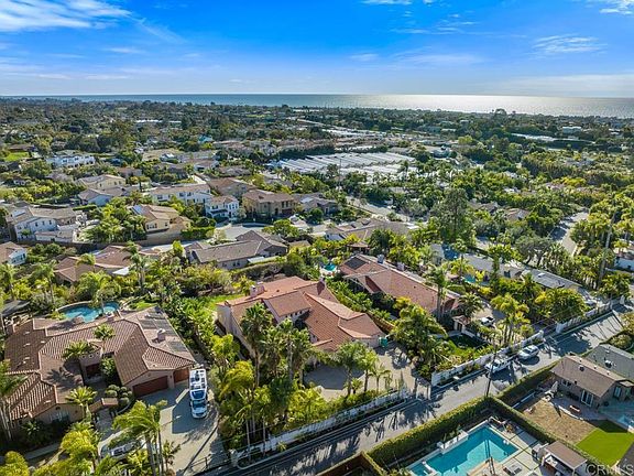Stunning 3,540 sq ft single-level Spanish-style home located in the grower district of Leucadia. Tucked away on a private cul-de-sac, this ultra-private gated estate offers four bedrooms with an optional fifth bedroom, spacious office and four bathrooms including one Jack & Jill and one en suite. There is an optional mother-in-law/Casita with a separate courtyard entrance. Office overlooks the lush tropical garden courtyard with built-in cabinets and desk. Large master retreat off of master bedroom with 10 foot ceilings, gas fireplace, his and her closet with built-ins and duel vanity sinks. Gorgeous eat-in chef's kitchen opens to the family room and breakfast area, ideal for families and gatherings. Formal entry with vaulted ceilings, wood floors in the living room with Sausalito tile in the entry, dining room, kitchen, hallway, family room and office. Over 1/2 acre of lush tropical landscaping, fruit trees and plenty of parking with split three car garage, gated extra large courtyard driveway and room for RV parking. This home offers an incredible location, just a mile from the beach, the Forum and Carlsbad and Encinitas Ranch Town Centers. Walk, bike or skate to popular Beacon's Beach, unique eateries and the best North County shopping available. Just blocks away from award winning Encinitas Union School District Capri Elementary.